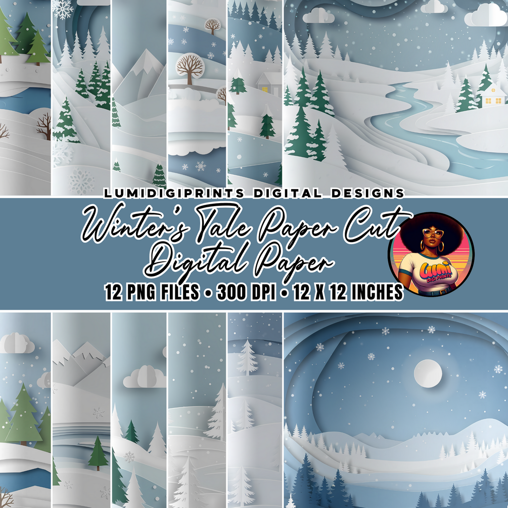 Winter's Tale Printable Winter Digital Paper – Christmas Backgrounds for Canva, Photoshop & Journals
