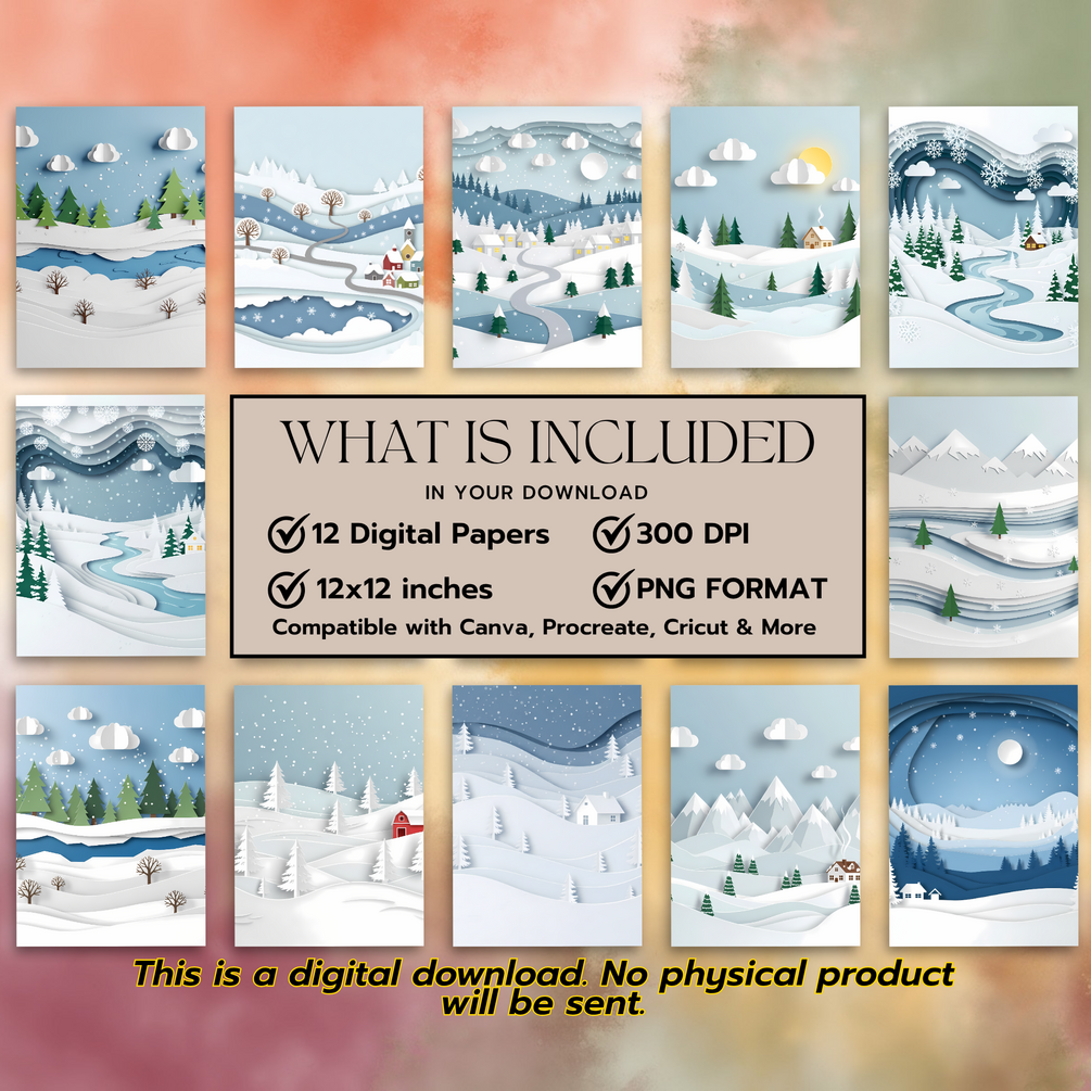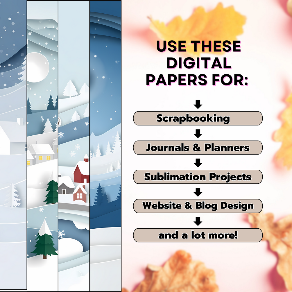 Each paper blends cool tones, soft winter textures, and subtle Christmas elegance — perfect for both personal use and client-ready creations.