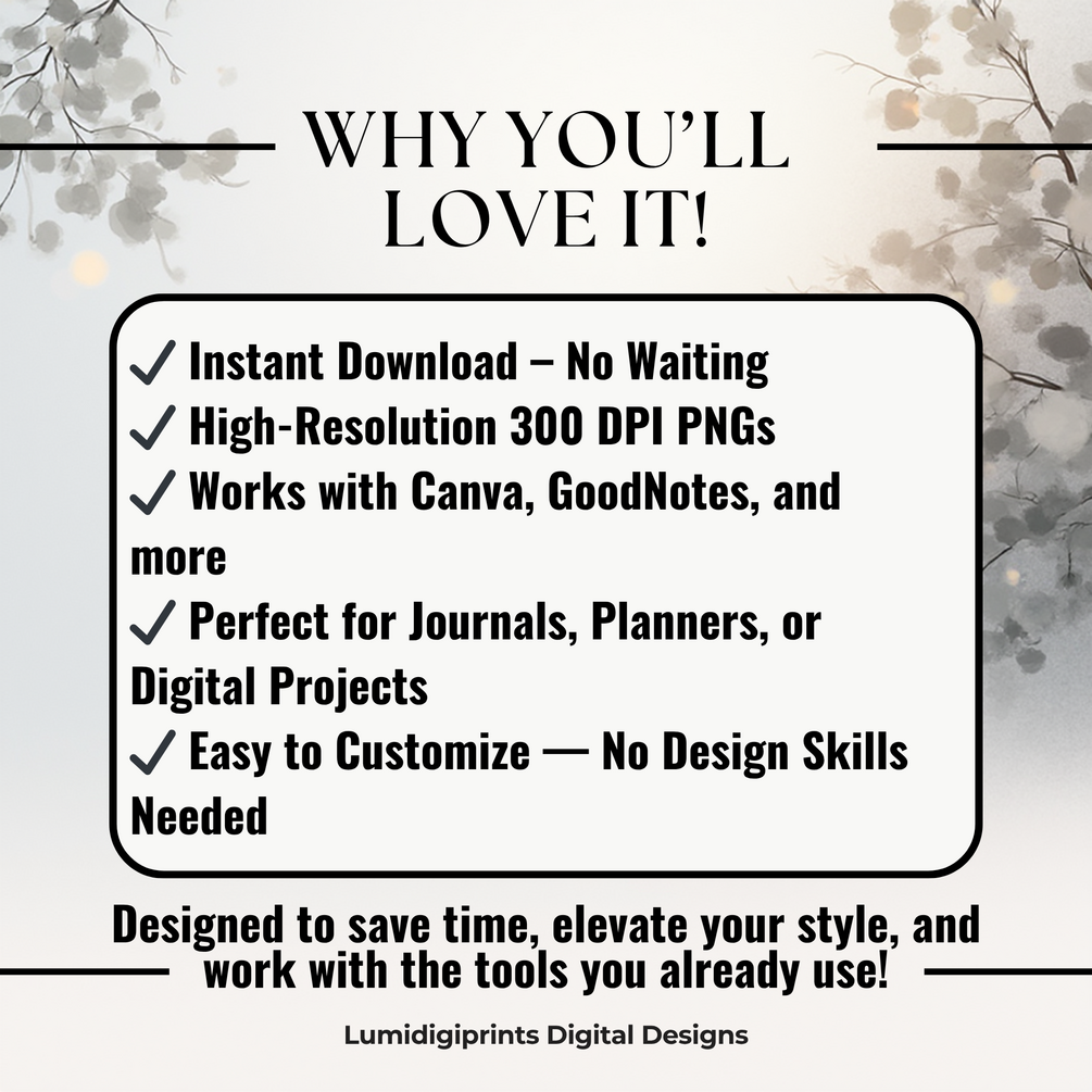 The Winter’s Tale Digital Paper Pack is your go-to for cozy, refined, and festive design. Whether you’re creating a printable greeting card, designing custom wrapping paper, decorating a digital scrapbook, or building editable notebook covers in Canva or Photoshop, this collection makes it simple to add holiday charm to any project.