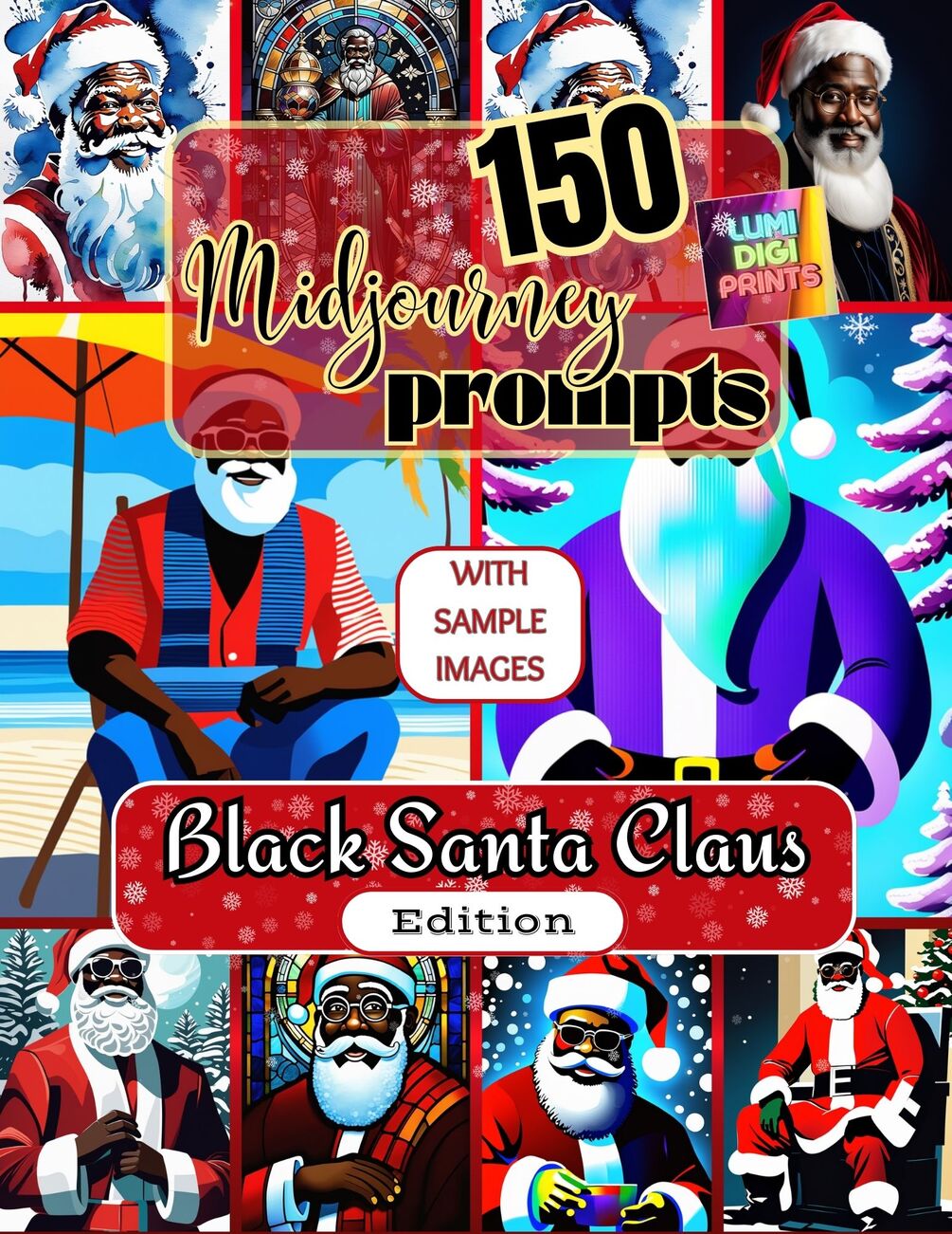 Get your #LumiDigiPrints "150 Midjourney Black Santa Claus Prompt Guide" today and start creating magical images!